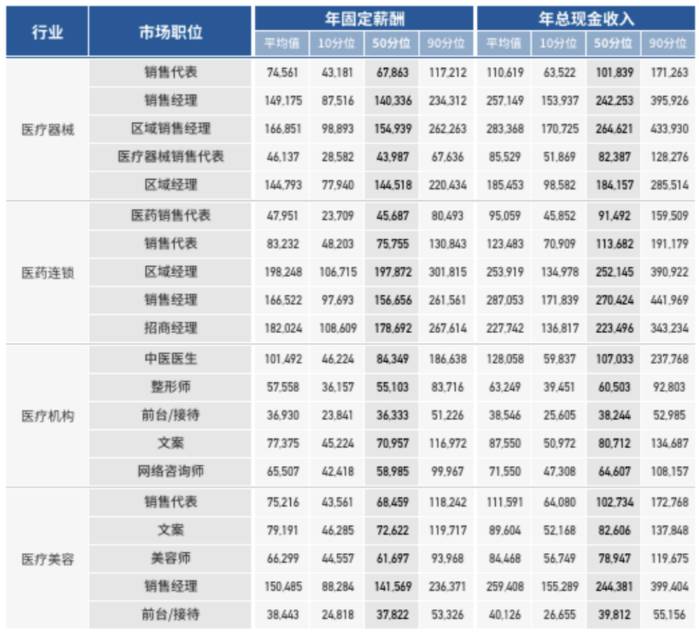 報告公布了醫(yī)療器械、醫(yī)藥連鎖熱門職位TOP5的薪酬數(shù)據(jù)。