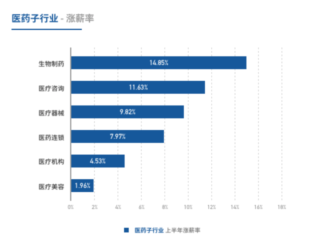 某種程度上,在漲薪率這個指標,醫(yī)藥行業(yè)是受影響最小的行業(yè)之一。