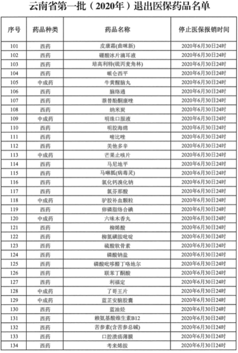湖南省調(diào)出醫(yī)保目錄的168個(gè)品種名單: