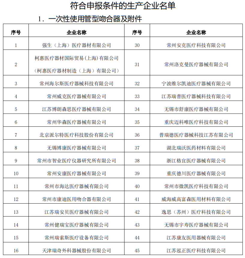與此同時(shí),采購文件還公布了符合申報(bào)條件的生產(chǎn)企業(yè)名單,其中: