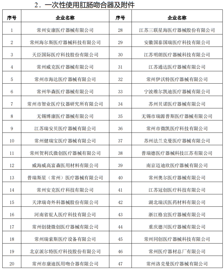吻合器類涉及強(qiáng)生、柯惠醫(yī)療、威海威高、江蘇博朗森思、天津瑞奇外科等械企;