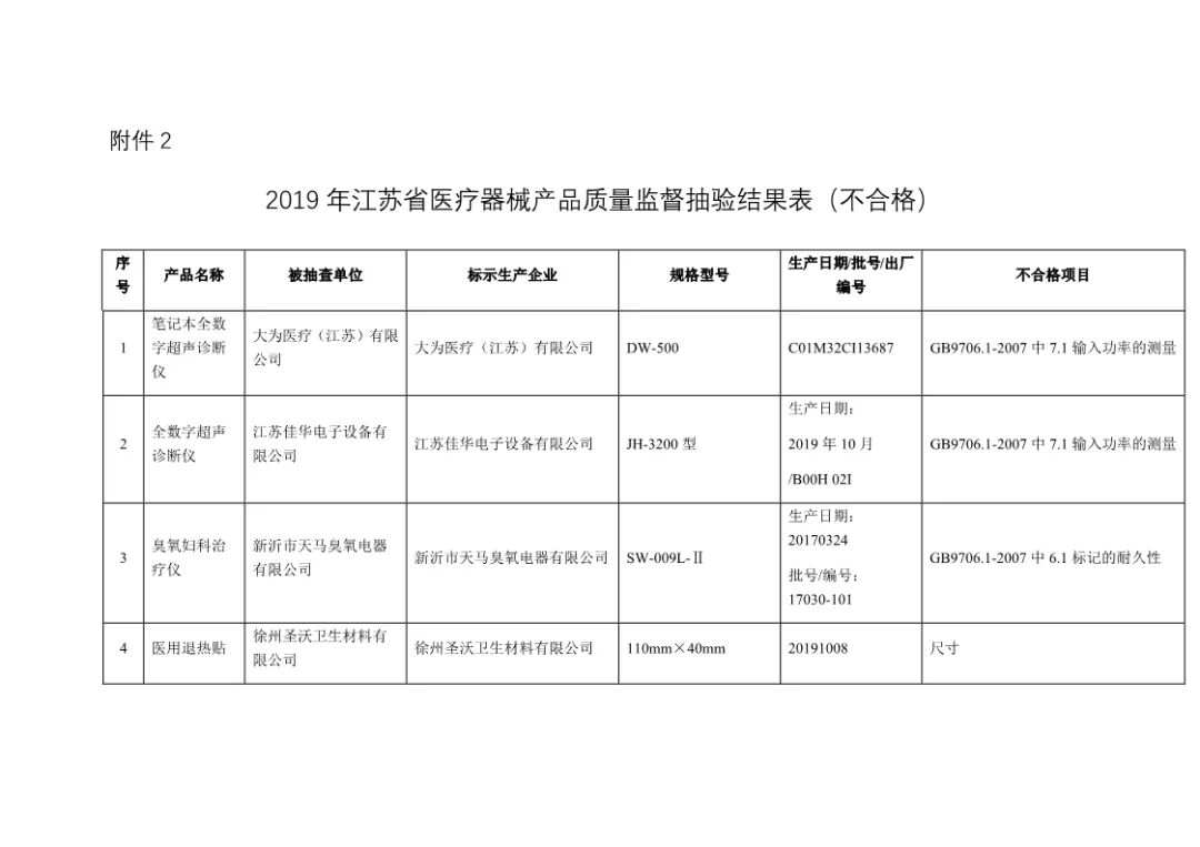 最終抽檢結(jié)果顯示,共2批次超聲診斷儀、1批次臭氧婦科治療儀、1批次中藥熏蒸機(jī)、1批次醫(yī)用退熱貼、1批次一次性使用包皮切割吻合器不符合標(biāo)準(zhǔn)規(guī)定。